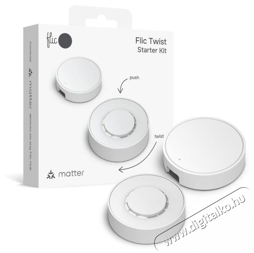 Tulajdonságok: - A vezeték nélküli Flic Twist okosgomb kezdőkészlet egy tekerőgombot és egy Flic Hub Minit tartalmaz