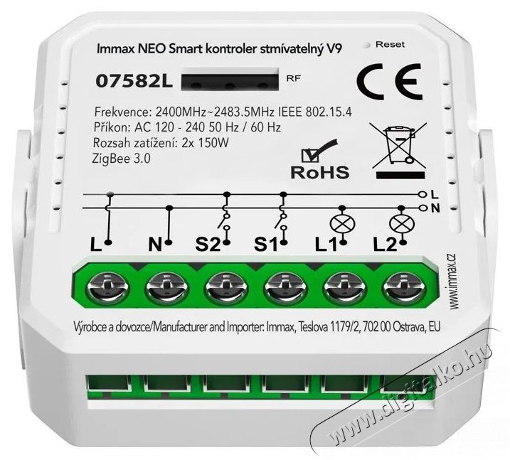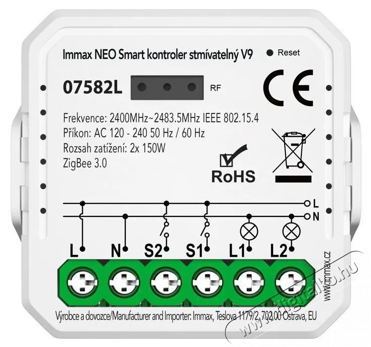 | Kommunikációs protokoll | Zigbee, Tuya támogatással. |
