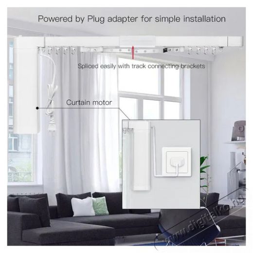 Termékjellemzők: - A MOES motoros függönybehúzó rendszer segítségével mobiltelefonnal, hanggal és távirányítóval is vezérelheted függönyeidet