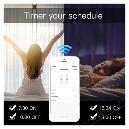 A Smart Life és Tuya APP alkalmazások A beépített motornak köszönhetően a MOES függönybehúzó rendszer együttműködik a Smart Life és a Tuya APP mobilalkalmazásokkal. Általuk bármikor és bárhonnan vezérelheted a függönyöket. Ez a sokoldalú alkalmazás segít irányítani a reggeli ébredést, ütemezni a függönyök behúzásának vagy elhúzásának idejét. A vezérlés hangalapú asszisztensekkel magától értetődő.