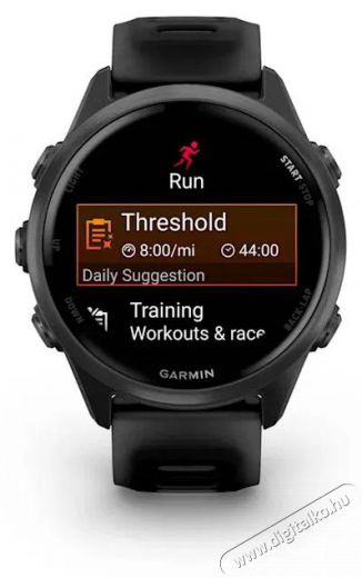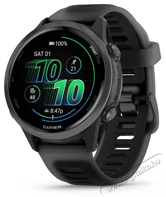 A Garmin Forerunner 570 okosórával stílusos leszel, és az edzés is remekül fog menni. A 390 × 390 px felbontású 1,2 hüvelykes AMOLED-kijelző egy masszív és könnyű alumíniumkeretben kapott helyet, amely kiváló fényerőt, részletes megjelenítést és gazdag színeket kínál. A kijelzőt Gorilla Glass üveg védi, amely nagyfokú karcállósággal büszkélkedhet. Az okosóra akár 10 napig is bírja egyetlen töltéssel.