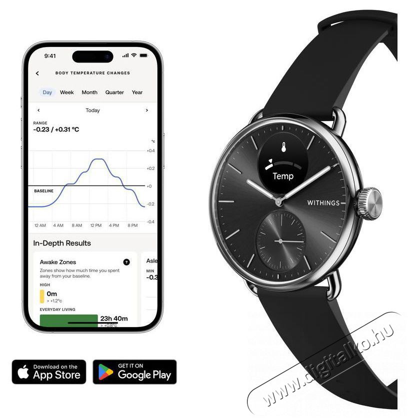 - A Withings ScanWatch 2 méri a testhőmérsékletet és meghatározza a hőmérsékleti zónát