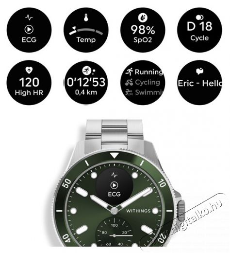 - A minőségi Withings smart óra sportfunkciói: lépésszámláló, tevékenység észlelése, távolság, útvonalrögzítés, kalóriaszámítás és pulzus zónák