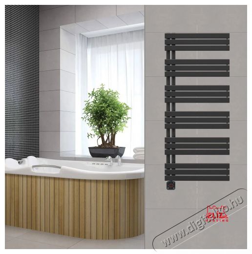 ELÍZ EBR 800 AG-B - Elektromos fürdőszobai radiátor matt fekete színben, 800 W teljesítménnyelAz ELÍZ EBR 800 AG-B elektromos radiátor a modern dizájnt ötvözi a praktikus használattal. Elegáns matt fekete kivitelben készült, és a hangtalan működésnek köszönhetően minden otthonba illik. 800 W-os teljesítményével körülbelül 10 m²-es helyiség fűtésére alkalmas, és praktikus törölközőszárítóként is szolgál. A vezérlés egyszerű – LED kijelzős érintőpanel segítségével. A radiátor megfelel a fűtési energiahatékonysági szabványoknak. Beépített fűtőszállal, 1,2 m-es tápkábellel (230 V) és fali tartókonzolokkal van felszerelve.