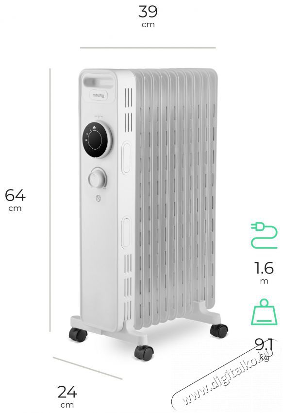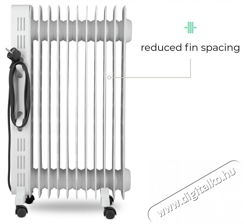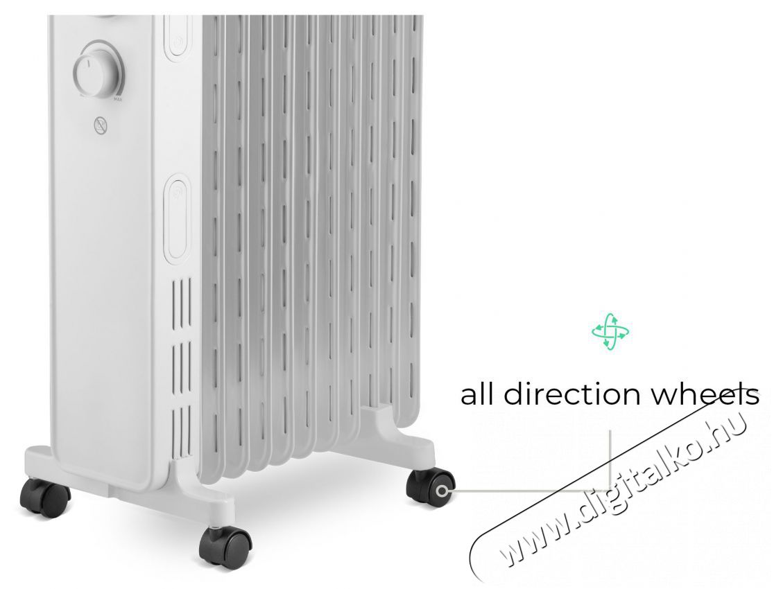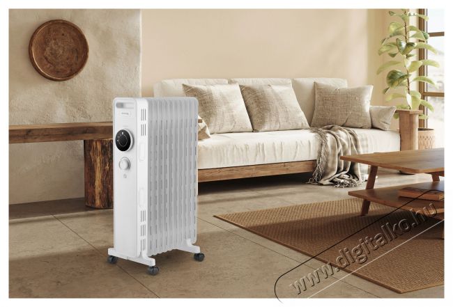 Optimális hőelosztást biztosító kialakítás A Siguro HO-B311W Coelodonta 2.0 olajradiátor két fűtőelemmel van felszerelve, amelyek jobb hőelosztást tesznek lehetővé, és hozzájárulnak a fűtési teljesítmény pontosabb szabályozásához is. A 11 szorosan egymás mellett elhelyezett bordával rendelkező kialakítás hatékony fűtést garantál, és a készülék nagy tárolókapacitással is büszkélkedhet - kikapcsolás után a radiátor a felmelegített olajban felhalmozott hőnek köszönhetően még hosszú ideig fűt.