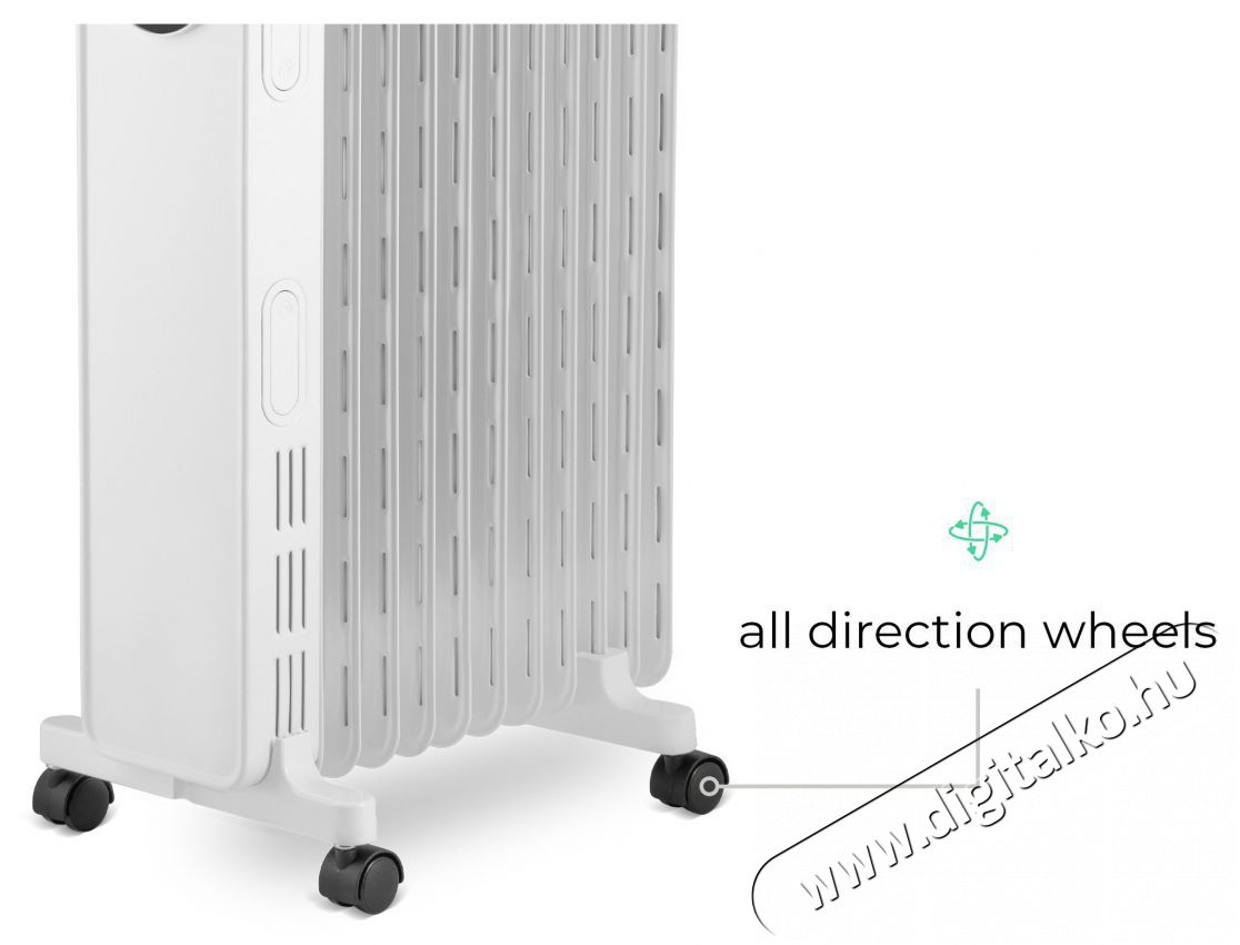 Optimális hőelosztást biztosító kialakítás A Siguro HO-D511W Dihoplus olajradiátor két fűtőelemmel van felszerelve, amelyek jobb hőelosztást tesznek lehetővé, emellett pontosabb teljesítmény-szabályozást is biztosítanak. A 11 szorosan egymás mellett elhelyezett bordával rendelkező kialakítás hatékony fűtést garantál, és a készülék nagy tárolókapacitással is büszkélkedhet - kikapcsolás után a radiátor a felmelegített olajban felhalmozott hőnek köszönhetően még hosszú ideig fűt.
