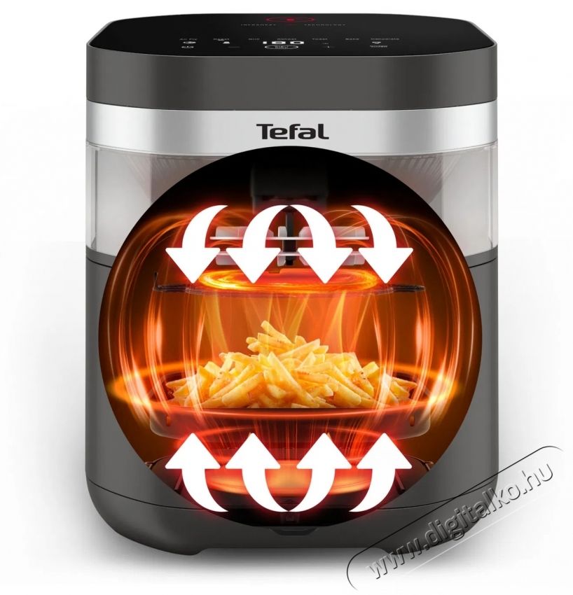 Fedezd fel a Tefal EY832HE0 Infrared airfryert, a Tefal első infravörös technológiával felszerelt forrólevegős sütőt, amellyel akár 4× gyorsabban érheted el a kívánt hőmérsékletet, mint egy hagyományos modellel. Készíts ropogós és ízletes ételeket minimális olajjal vagy teljesen olaj nélkül, miközben a kettős fűtésnek köszönhetően mindig tökéletesen átsülnek. A nagyvonalú, 7 literes űrtartalom ideális családi főzéshez, és még a nagyobb alapanyagokat is könnyedén kezeli. Praktikus funkciók – átlátszó ablak az elkészülés ellenőrzéséhez, digitális kezelőpanel ésmosogatógépben mosható fritőztál biztosítják a kényelmes használatot. Élvezd a gyors főzést és a szaftos eredményeket, legyen szó akár egész sült csirkéről vagy aranybarnára sült ropogós hasábburgonyáról.