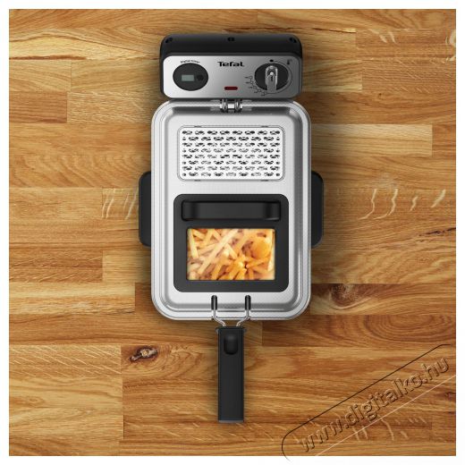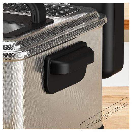 A Tefal Filtra Pro FR511170 készülék termosztátja 150° és 190° között állítható. Beállíthatod az időt és az időzítőt is, hogy mikorra készül el az étel.