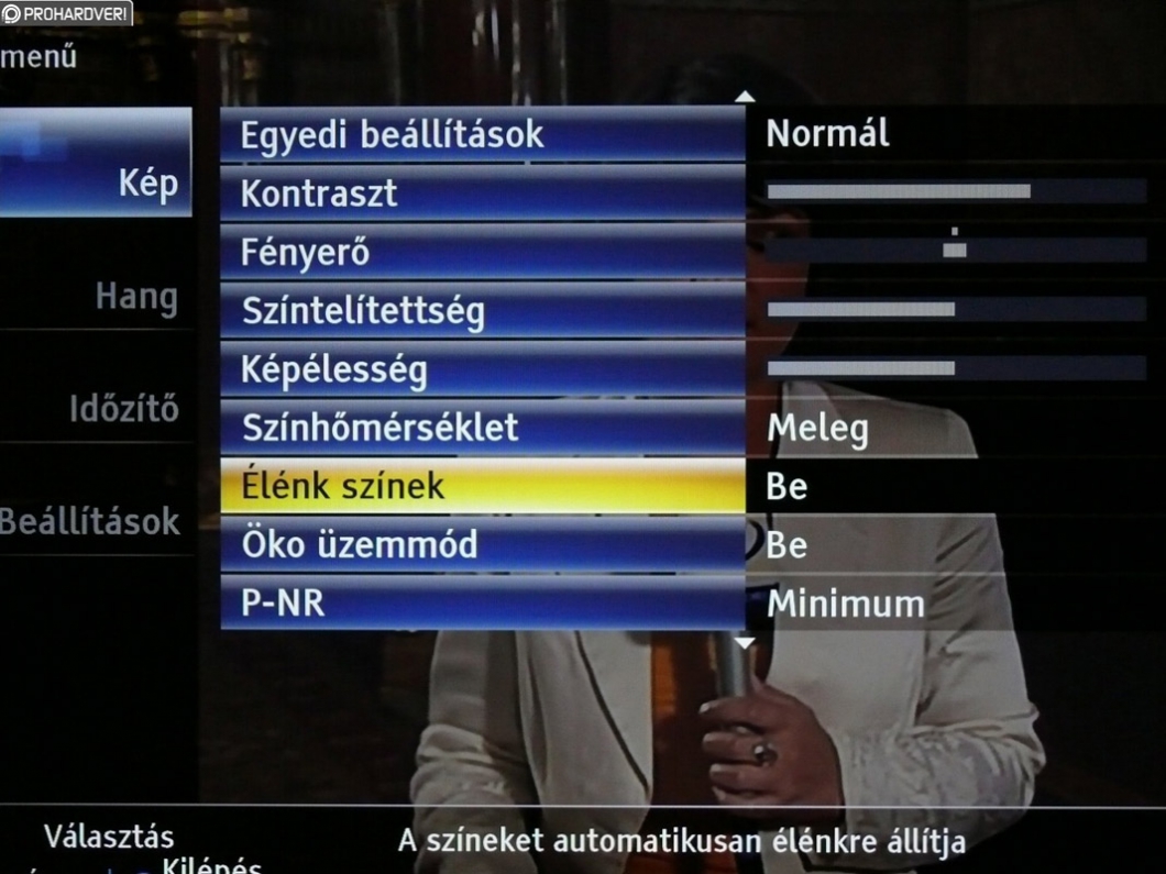 Ebben a tévében az egyik legérdekesebb dolog, hogy mintha az egymáshoz közel álló funkciók megtervezését teljesen más emberekre bízták volna. Ami az egyikben benne van, az a másikból kimarad. Ugyanez volt a beépített médialejátszónál a fotók és zenék esetében, és most ez köszön vissza itt is. Érthetetlen, hogy ha a hangnál elérhetővé tettek egy felhasználói mentéseket tartalmazó fakkot, ugyanakkor ez a képi beállításoknál hiányzik. Pedig itt még talán több értelme is lett volna. Így ötféle előre beprogramozott opció közül választhat az ember. A Dinamikus, Normál, Mozi és Játék mellett bekerült a szórásba egy True Cinema nevű fiók is. Ezek már nevükben is jelzik, hogy a gyártó milyen tartolomhoz szánja őket, de értelemszerűen nem kell ehhez ragaszkodni.