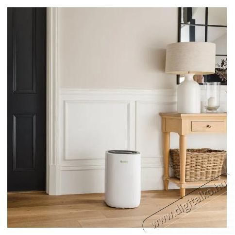 Páramentesítő - max. 50 m² nagyságú helyiségekbe ajánlott, 12 l/napos páramentesítő kapacitás, 2,6 l-es tartály, 40 dB zajszint, funkciók: teljesítmény szabályozás, időzítő, anti-freeze, kijelző, automatikus kikapcsolás, automatikus párátlanítás, "turbo" rendszer ruhák szárításához, megtelt tartály jelző és automatikus újraindítás, tömege 11,4 kg.