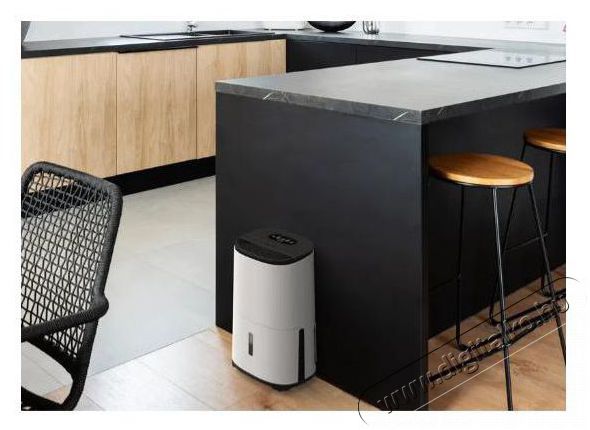 Páramentesítő - max. 50 m² nagyságú helyiségekbe ajánlott, 12 l/napos páramentesítő kapacitás, 2,5 l-es tartály, 38 dB zajszint, funkciók: teljesítmény szabályozás, "turbo" rendszer ruhák szárításához, megtelt tartály jelző és automatikus újraindítás, tömege 10,9 kg.