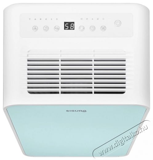 A vezérléshez használhatod a TUYA Smart mobilalkalmazást, és bárhonnan könnyen beállíthatod nemcsak a célnedvességet, az üzemmódot, hanem a ventilátor sebességét is két szinten – alacsony és magas. Természetesen az automatikus kikapcsolás vagy a készenléti módból való bekapcsolás időzítője is elérhető 1-24 óra között. A Siguro DH-C400K Dry Nest készüléket akészülék tetején található gombokkal is irányíthatod. Praktikus kijelző is van, amely mutatja a beállított kikapcsolási időintervallumot vagy az aktuális páratartalmat, valamint gyerekzár, amely lezárja a kezelőpanelt, hogy ne történjen nemkívánatos vagy véletlen beállítás-módosítás.