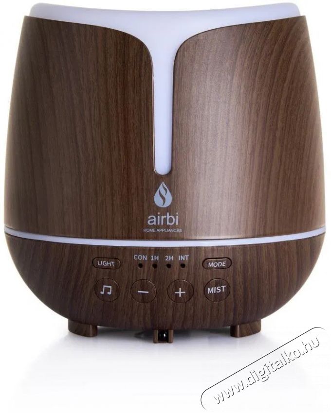 A sötét fa színű Airbi SONIC aroma diffúzor legfontosabb tulajdonságai: - Az aroma diffúzor gőze hidratálja a bőrt és a nyálkahártyát