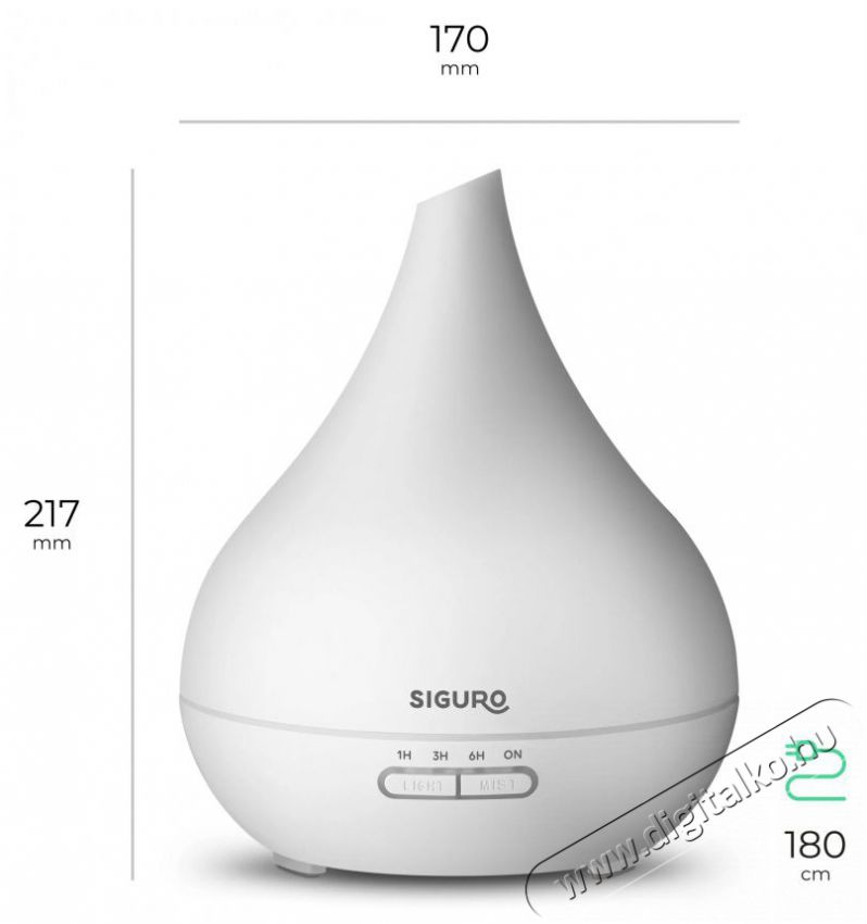 Tulajdonságok | Automatikus kikapcsolás, Időzítő, Intenzitás beállítása, LED háttérvilágítás, Párásító |