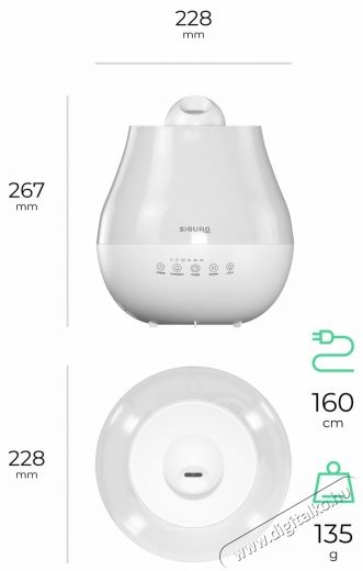 A beépített éjszakai világítás (meleg fehér fény) otthonos környezetet teremt az esti órákban. Amikor elfogy a víz, a készülék hangjelzéssel figyelmeztet az üres tartályra, és automatikusan kikapcsol. A Siguro HU-M100W Mood Mist párásító része egy antibakteriális kerámiagolyókat tartalmazó box is, amely segít tisztán tartani a tartályban lévő vizet és megakadályozza a baktériumok elszaporodását. Ennek köszönhetően biztosított a higiénikus működés és az egészségesebb környezet az otthonodban.