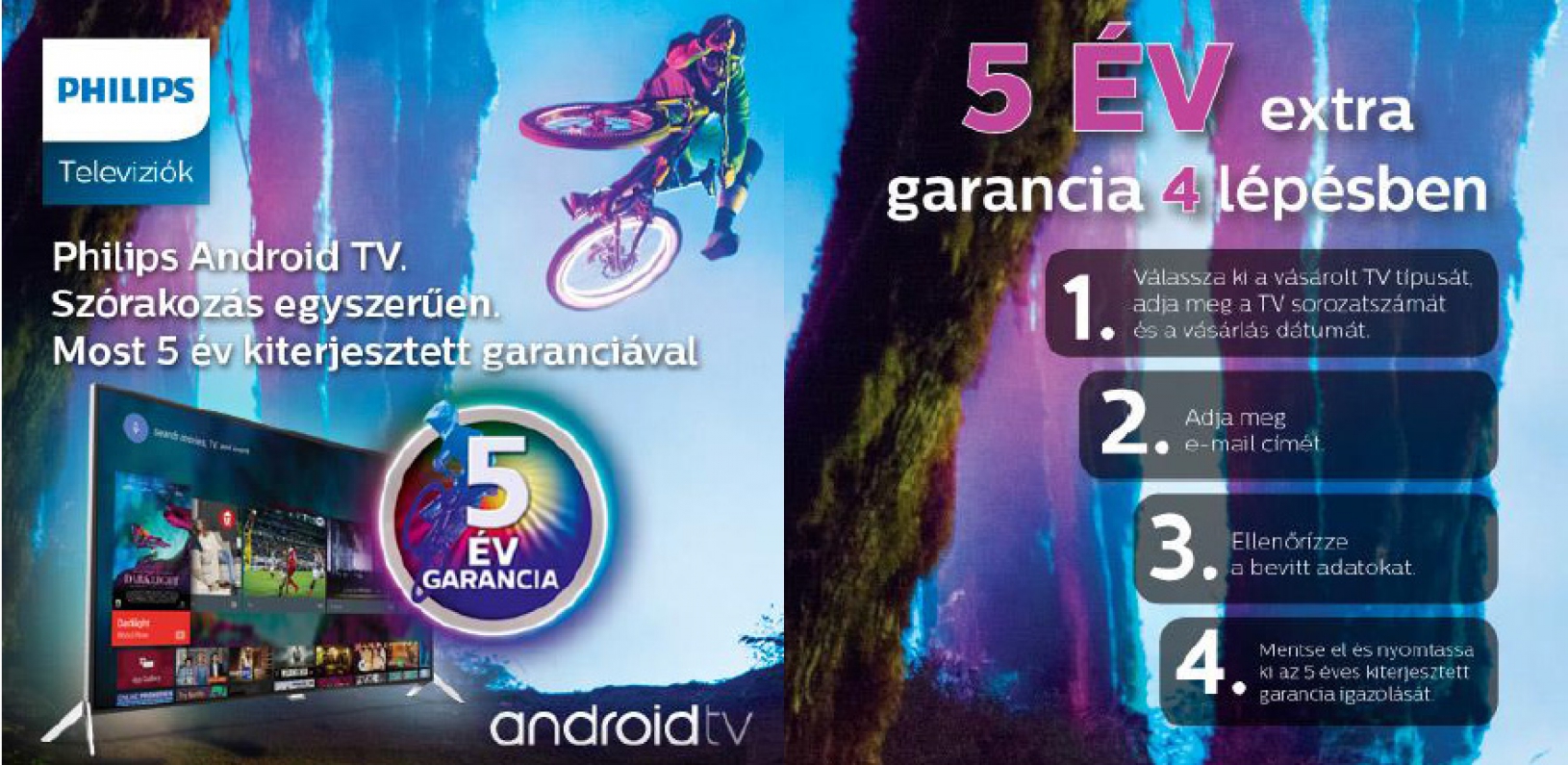 5 év kiterjesztett garanciát ezen Philips Android Smart televíziókra igényelhet.