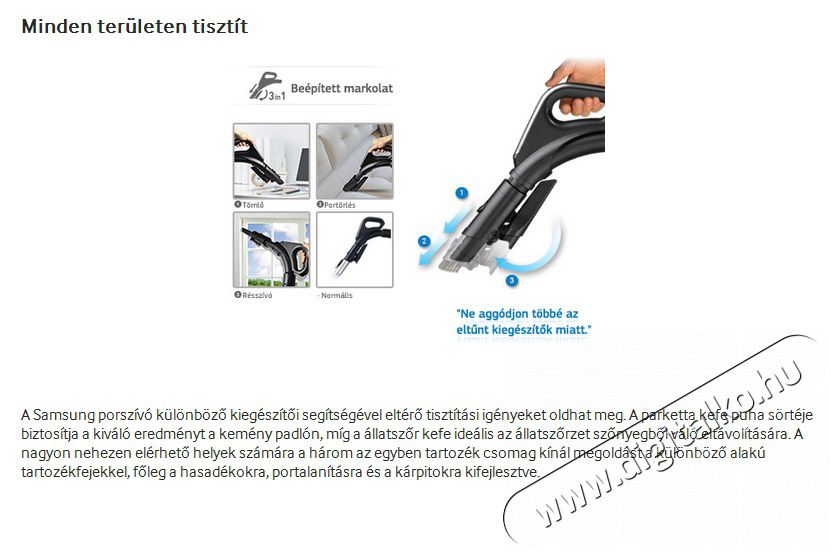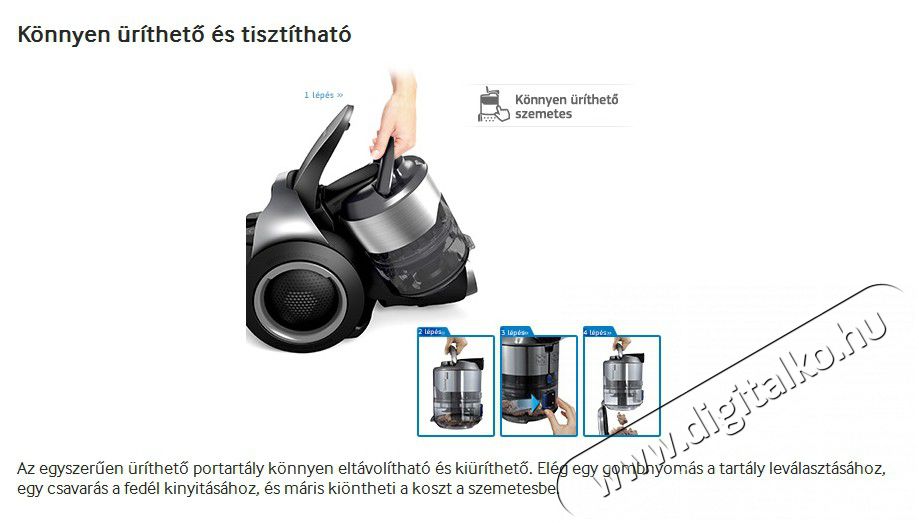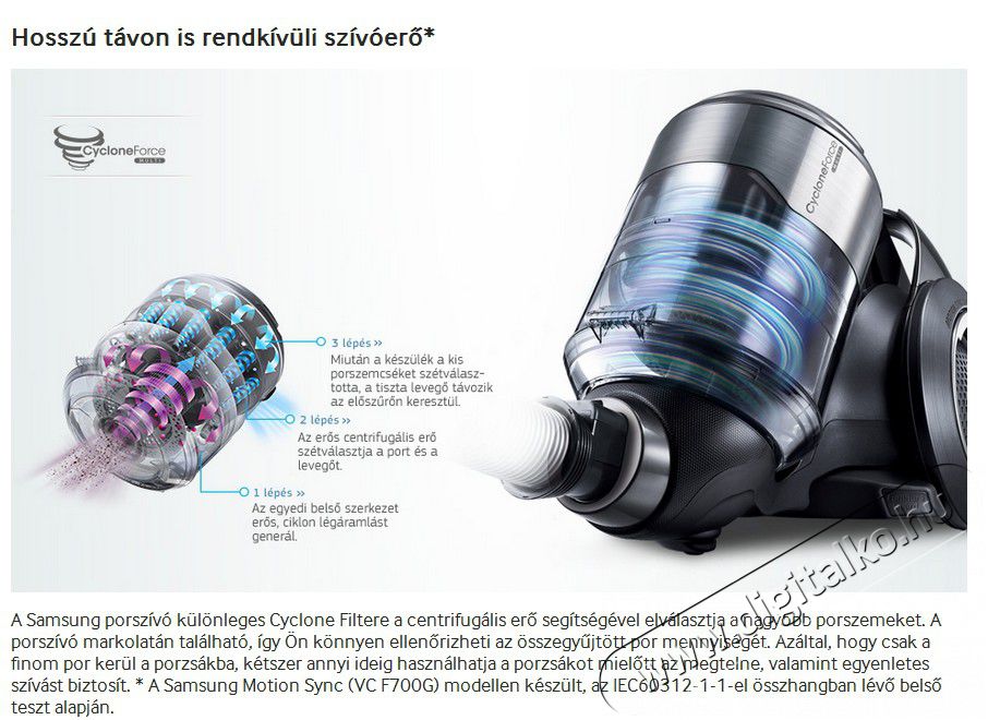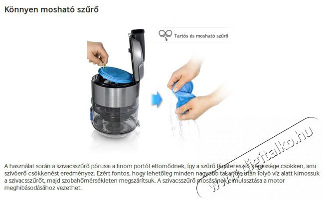 Ciklon technológia A ciklon technológia magasabb hatékonyságot biztosít, emellett tisztán tartja a szűrőket, így garantálva a hosszabb élettartamot.