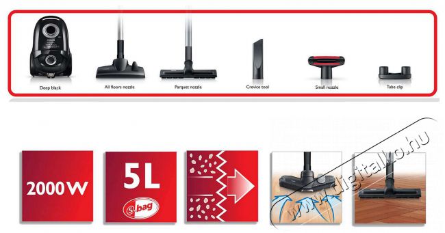 • Porzsák típusa: s-bag, rendkívül tartós kialakítás