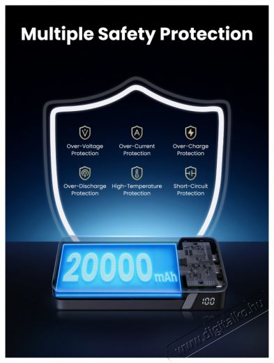 Töltsd fel készülékedet az idő töredéke alatt, akár útközben is. A Ugreen 20000mAh PD 100W Power Bank 20000 mAh lehetővé teszi, hogy egyszerre akár három készülékedet is gyorsan feltöltsd. Két USB-C és egy USB-A porttal rendelkezik. A 20000 mAh kapacitásnak köszönhetően egymásután többször is feltöltheted a mobiltelefonodat. Maga a Ugreen powerbank teljes feltöltése mindössze 2 órát vesz igénybe. Természetesen rendelkezik túlfeszültség, magas hőmérséklet és túltöltés elleni védelemmel.