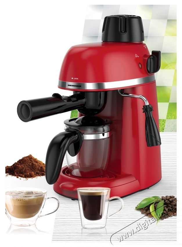 Heinner Kopy 350RD HEM-350RD eszpresszógép, 800 W, 3,5 bar, 0,24 literes tartálykapacitás, főzési lehetőségek: eszpresszó és cappuccino, piros