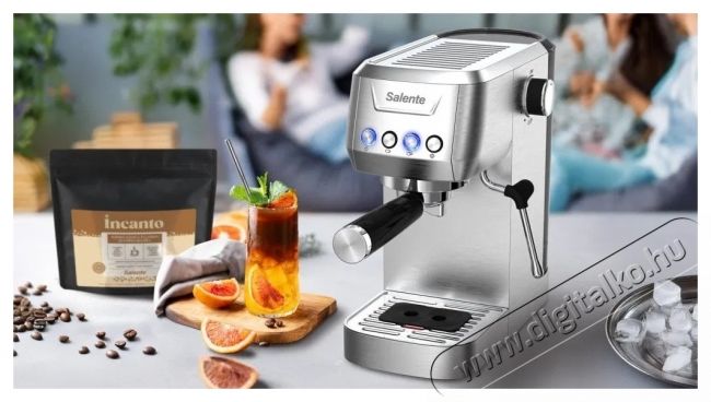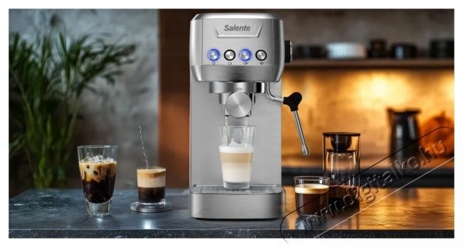 Salente Coffio - kávéfőző, olyan kávét főz, akár egy kávézóbanKészítsd el kedvenc kávédat pontosan az ízlésed szerint. Az elegáns, nemesacél Salente Coffio karos kávéfőző a professzionális teljesítményt egyszerű kezelhetőséggel ötvözi, így otthon is könnyedén varázsolhatsz eszpresszót, kapucsínót és lattét az asztalra, mint egy barista. Nagyszerű választás azoknak, akik értékelik a frissen őrölt kávé minőségét, stílusát és aromáját.