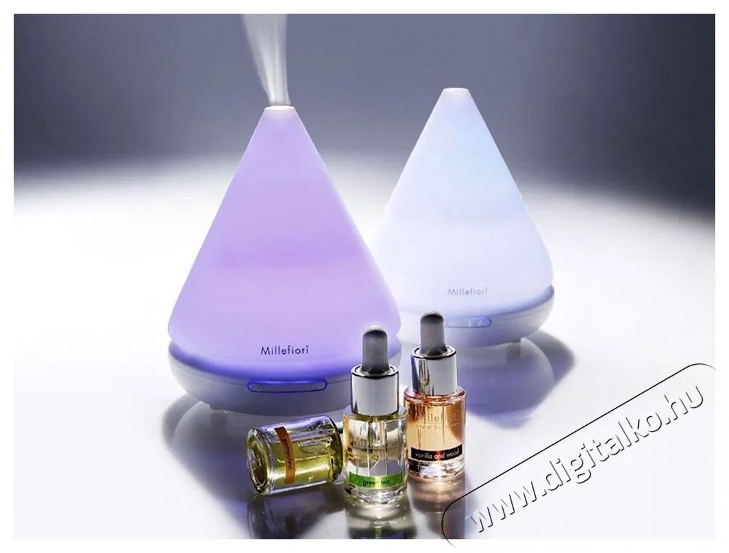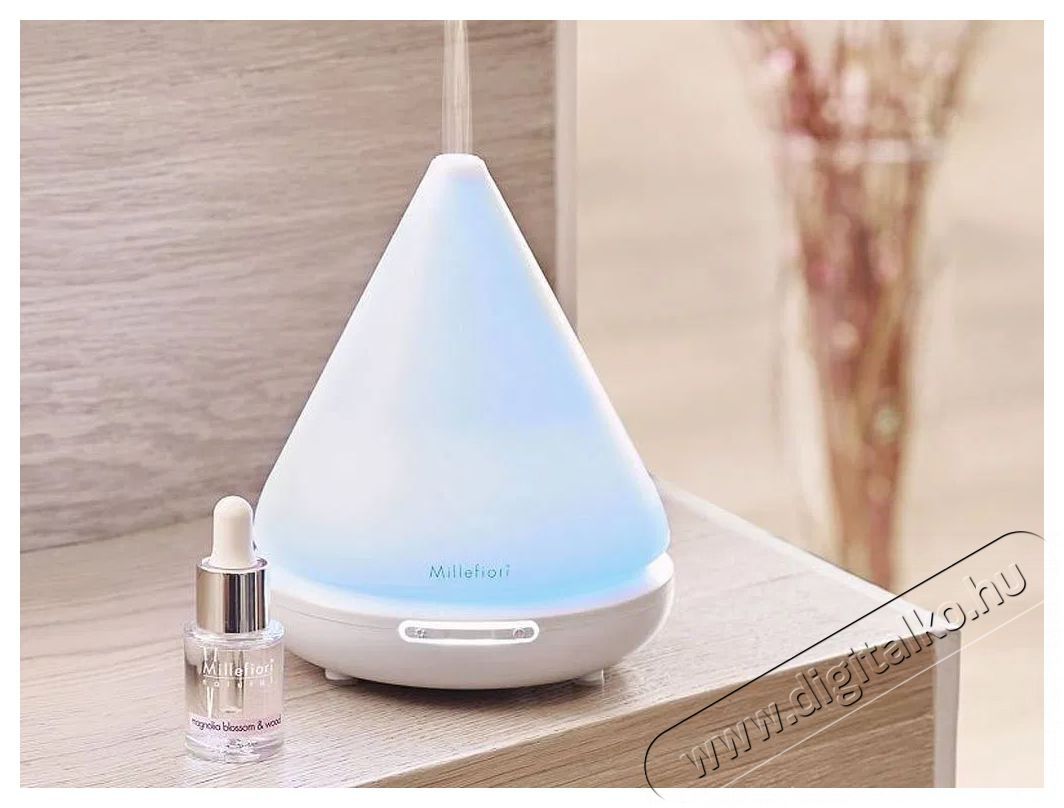 A Hydro ultrahangos diffúzort Millefiori Natural illatos olajokkal lehet használni. Elég csak néhány csepp a vízbe, és a gyors párolgásnak köszönhetően pillanatok alatt illatossá teszi otthonát, és párásítja a levegőt. A diffúzor teljesen csendesen működik, és a beállításoknak megfelelően világít.