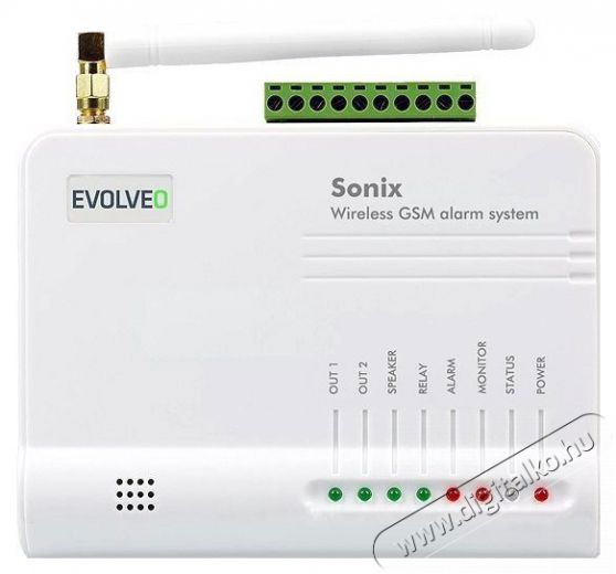 Az Evolveo Sonix vezeték nélküli GSM biztonsági riasztó ideális választás lakás, iroda, garázs, műhely, ház, nyaraló vagy üzlet védelmére. A rasztó beszerelését bárki képes elvégezni, így nem kell külön fizetni a telepítésért az erre specializált cégeknek. A vezeték nélküli technológia nem igényel semmilyen fúrást vagy kábelezést, elég csak az érzékelőt a létesítménybe, vagy tőle maximum 80 méteres távolságra helyezni. A megfigyelt létesítménybe való betörés esetén SMS üzenetet, és akár 5 előre beállított számra pedig hívást is kapsz. A készülék külső hanszóróval kapható - a betörő így hallani fogja, amit a telefonodba mondasz. Ezt a rendszert könnyedén kiegészítheted további külső - akár 3 vezetékes, és akár 16 vezeték nélküli - Evolveo márkájú érzékelővel. A riasztó központi egysége és az érzékelők beltéri használatra alkalmasak.