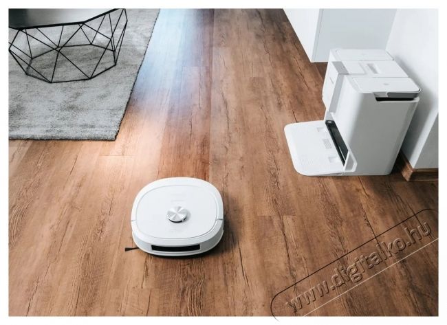 - A multifunkciós dokkolóállomás kiüríti a port, kiszivattyúzza a szennyvizet, kimossa és megszárítja a mopot