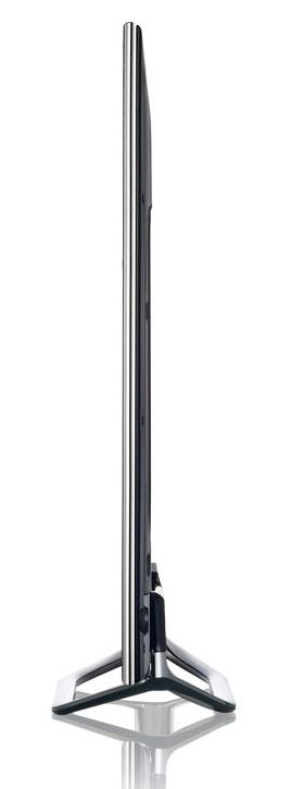 A cég már tavaly is kísérletezett különleges, nyakkal egybeépített talppal. A krómozott, csillag alakú kialakítás nem aratott osztatlan sikert, de ez az Organikus Talpnak nevezett kialakítás talán népszerűbb lesz. Az egész olyan, mintha egy szánkóra építettek volna egy tévét, de mivel színében tökéletesen illeszkedik a fém kerethez, ezért a végeredmény kifejezetten ízléses lett. Az egy darab kékesen derengő (kikapcsolható a világítás, ha bárkit zavar) logón kívül semmilyen egyéb díszítés nem került a tévére, habár erre nem is lett volna nagyon hely.