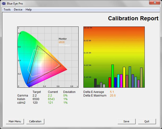 Sajnos a mérések azt mutatják, hogy a kalibrálás nem sikerült a legjobban, hiszen a delta E értékek elég magasak, pedig szemre semmi gond nem volt a képpel. Mindesetre következzenek az általunk és a kalibrátor által legjobbnak vélt beállítások: