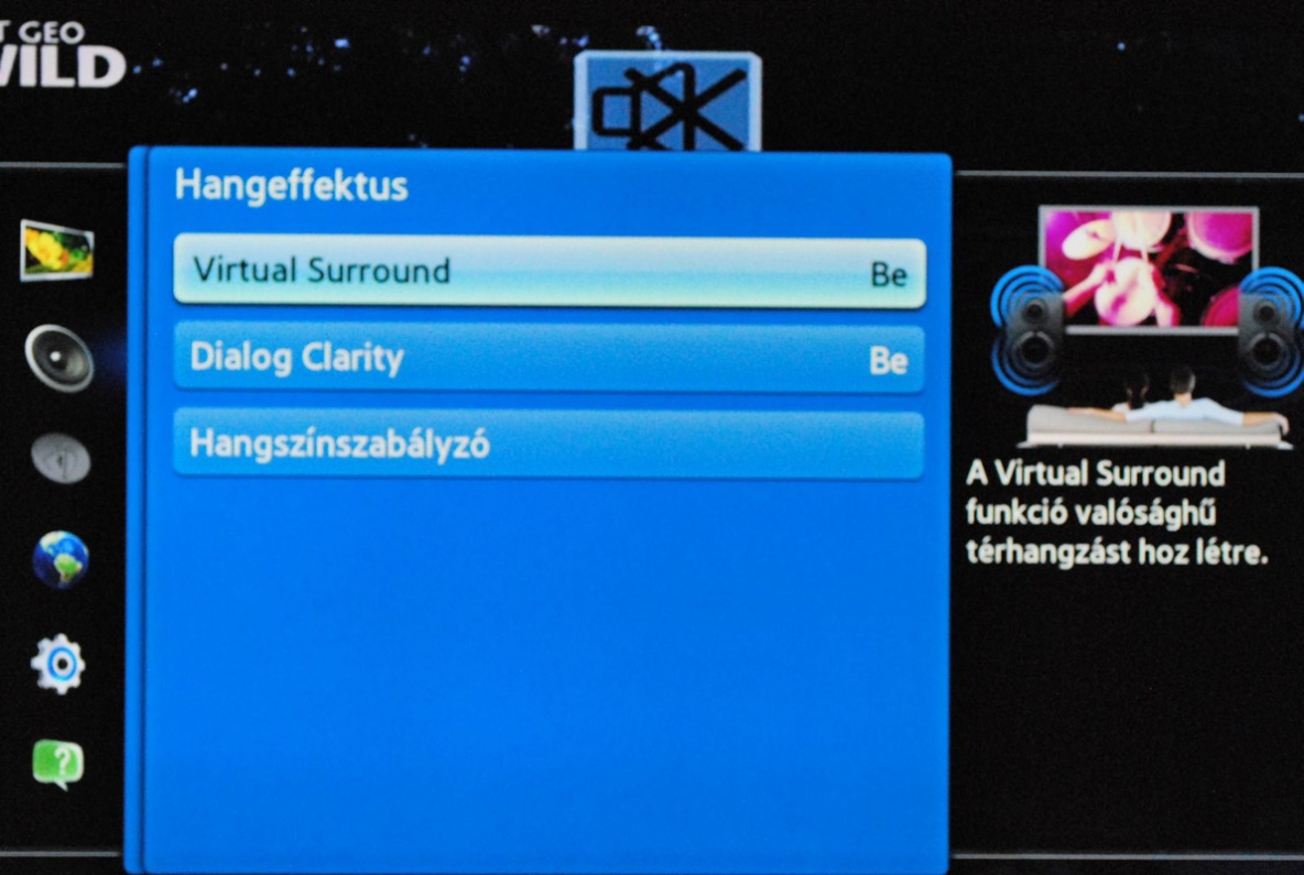 Bekerült ide két speciális hangzásmód is. A Dialog Clarity egyenletes háttérhangszintet biztosítva erősíti fel a beszédhangot, a Virtual Surround pedig elméletileg arra képes, hogy valósághű térhangzást hozzon létre, de ez annyi más hasonló megoldáshoz hasonlóan itt sem működik igazán. Erre és ehhez ugyanis a kétszer tíz wattos beépített hangszóró egyszerűen kevés. Érdemes megemlíteni még az Automatikus hangerő funkciót, melynek aktiválása után az elektronika magától kiegyenlíti a hangerőkülönbséget csatornaváltáskor. Emellett természetesen arra is mód nyílik, hogy bárki saját ízléséhez szabja a balanszot, illetve a magas- és mély hangok arányát, úgyhogy ha valakinek nem tetszenek az előzetes beállítások, akkor érdemes ezzel elszórakoznia.