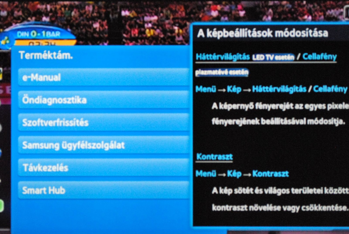 A szöveges magyarázatot (amely gyakran épkézláb tanácsokkal is szolgál az egyes beállításokkal vagy bizonyos funkciók használatával kapcsolatban) szép színes ábrákkal egészítették ki, ráadásul ha bármikor egy OK gombot nyomunk, a készülék felajnálja, hogy automatikusan oda ugrik, ahol az adott opció elérhető vagy indítható. Így nem csak pofonegyszerű és világos a dolog, de még a sebesség is teljesen rendben van. Emellett már csak hab a tortán, hogy a menürendszerben bármelyik opcióra vagy paraméterre lépve a modell egy rövid, de tömör, olykor képpel is megtámogatott szöveggel azonnal tájékoztat annak feladatáról. Ez még annak is hasznos lehet, aki otthon van a tévék, szórakoztatóelektronikai termékek világában