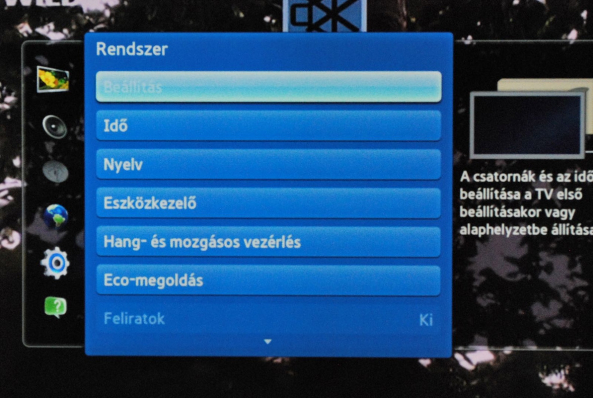 A különféle hang-, kép- és rendszerbeállításokat tartalmazó menürendszer semmit sem változott a tavalyi évhez képest. Ezzel egyrészt nincs semmi baj, hiszen maga a struktúra logikus, könnyen átlátható, és az egyes menüpontok kellően sekélyek, tehát eltévedni nem nagyon lehet, plusz nagyjából minden a helyén is van. Aki az elmúlt években már látott közelről tévét, annak az itteni navigáció sem okozhat problémát. Apróság ugyan, viszont a külsőn csiszolhattak volna egy kicsit. Nem mintha csúnya lenne a felület, csak hát mégis eltelt egy év, és egy ilyen kategóriánál talán már belefért volna a váltás.