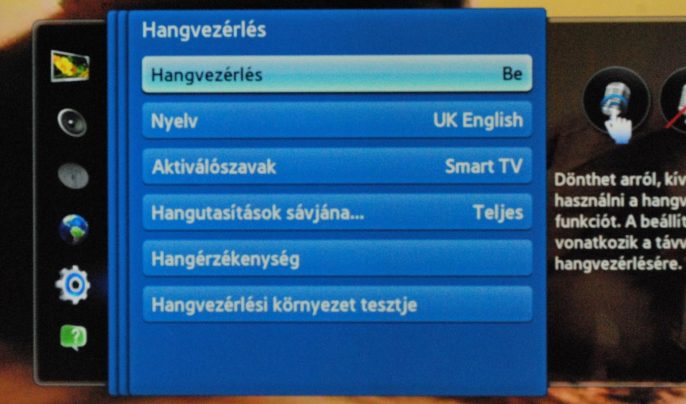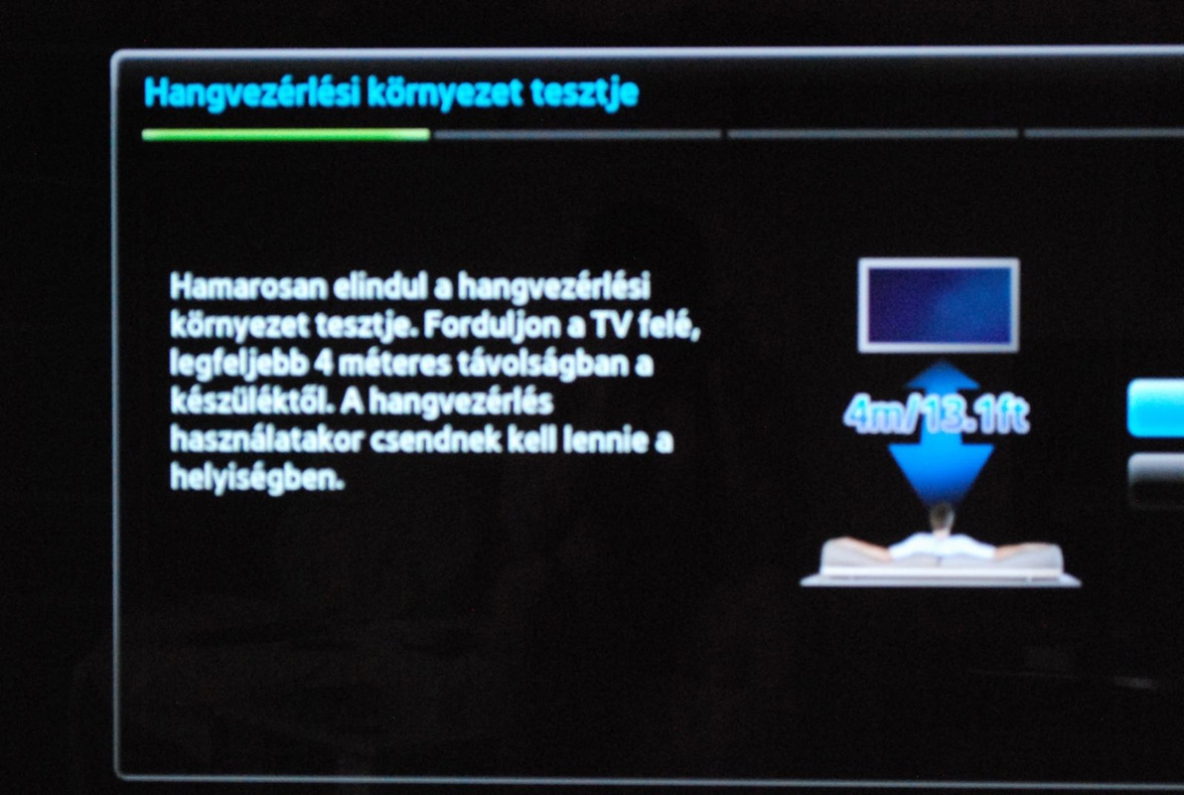 A hangvezérlés már jobb, viszont egyelőre magyarul nem érhető el, és kicsit kevés funkciót támogat. Azaz a csatornaváltáson kívül (ami ugye szolgáltatótól kapott médiabox esetén amúgy is felejtős) a hangerőt lehet vele szabályozni, bekapcsolható a kamera, valamint elindítható egy-két alkalmazás, illetve a böngésző. Utóbbinál arra is van lehetőség, hogy bediktáljuk neki a keresőszót, de ezt egyelőre még hajlamos félreérteni, és hát magyar szöveg helyett annak angol megfelelőjét üti be virtuális ujjaival az elektronika. A hangvezérlés jól működik, azt leszámítva, hogy a jelek szerint nem gondoltak arra, hogy az aktiválószót maga a tévé is "kimondhatja". Azaz, ha valamilyen olyan műsor megy, amiben elhangzik a "Smart TV" vagy "Hi TV" kifejezéshez hasonló szókapcsolat, akkor automatikusan felugrik a hangvezérlő ablak. Ez pedig az épp futó műsor hangerejének radikális lecsökkenésével jár együtt, ami valami döbbenetesen idegesítő tud lenni.