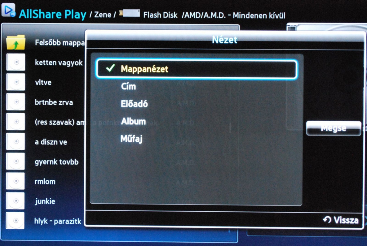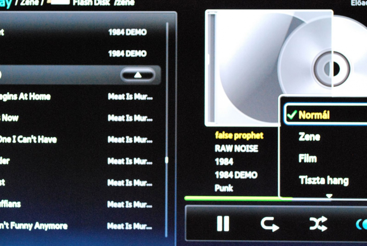 Érdekes, hogy zeneszámok esetén megoldott, hogy több könyvtárból szemezgessen a felhasználó, így remek kis lejátszási lista hozható létre. Lehetőség nyílik arra is, hogy stílus vagy előadó szerint listázzuk ki a fájlokat, azaz értelemszerűen az ID3 tagek feldolgozására és megjelenítésére is képes. Külön lejátszóképernyő nincs, de nem is hiányzik. A kötelező MP3 mellett megoldott a WMA és a FLAC formátumok lejátszása is, amiért pirospont jár.