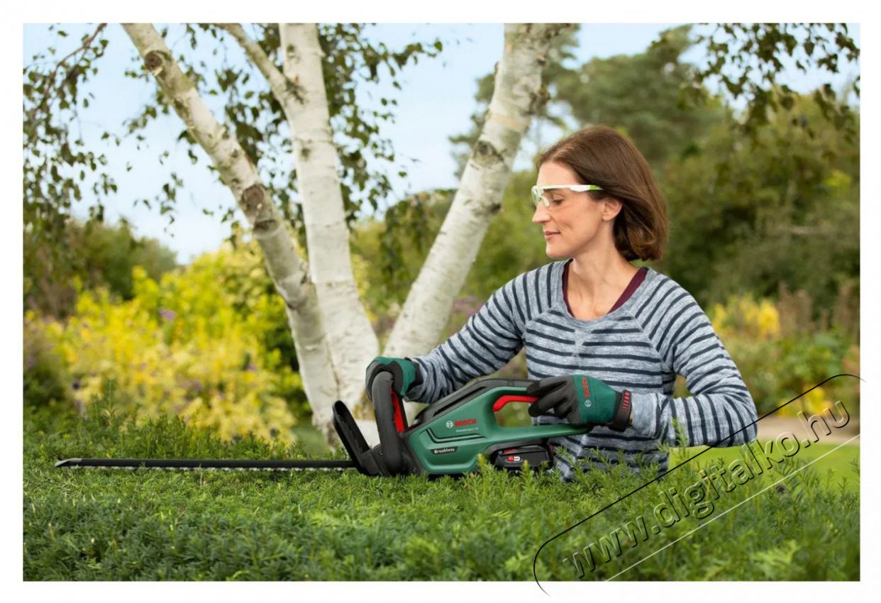 BOSCH UniversalHedgeCut 18-55 (akku nélkül)A Bosch UniversalHedgeCut 18-55 akkumulátoros sövényvágó egy hatékony és könnyű segítőtárs a sövények és bokrok karbantartásához. A szénkefe nélküli motornak köszönhetően nagyobb teljesítményt, hosszabb élettartamot és kisebb súlyt kínál, ami csökkenti a fáradtságot a hosszabb munkavégzés során. A kétoldalú kések lehetővé teszik a növények precíz formázását különböző szögekben, míg a lézerrel vágott és gyémánttal csiszoltpengék garantálják a tiszta és pontos vágást. Az 550 mm-es késhossz és a 22 mm-es késtávolság lehetővé teszi a közepes méretű sövények, mint például a babérok, bükkök vagy fagyal könnyű nyírását. A szabadalmaztatott Bosch blokkolásgátló rendszer megakadályozza az elakadást, és folyamatos munkavégzést tesz lehetővé még a vastagabb ágak vágásakor is. A modell a POWER FOR ALL ALLIANCE része, ami azt jelenti, hogy kompatibilis a Bosch 18V-osakkumulátoraival és a rendszer más márkáinak akkumulátoraival is. Az akkumulátor töltöttségjelzőjének köszönhetően mindig tudod, mennyi energia maradt.