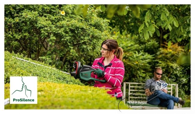 Bosch UniversalHedgeCut 06008C0703 sövényvágó, 480 W, 60 cm-es pengehossz, 30 mm-es fognyílás, 3400 ütés/perc Nagy teljesítmény közepes méretű sövény nyírásánál 80%-kal kisebb zajjal.