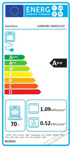 - A minőségi ELECTROLUX beépíthető sütő A++ energiaosztályba esik