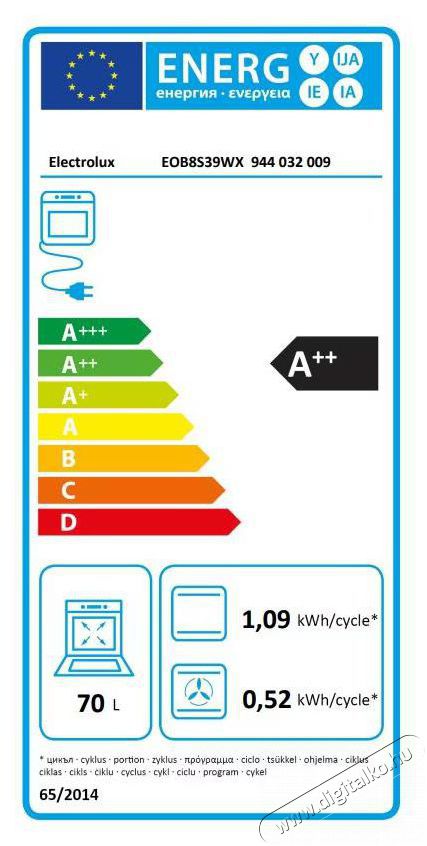 | Programok: | Alsó sütés, ventilátor + világítás, grill, grill + alsó sütés, grill + alsó sütés + légkeverés, hőlégbefúvás, hőlégbefúvás + alsó sütés, hőlégbefúvás, gőz + alsó sütés + ventilátor, gőz + ventilátor, gőz + hőlégbefúvás + alsó sütés |