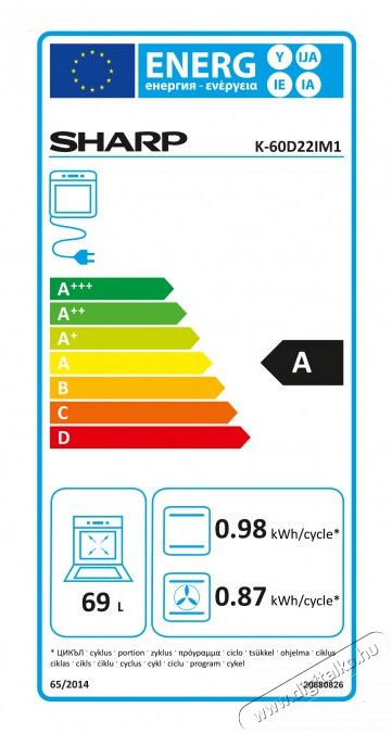 - Energiafogyasztás légkeveréses/hőlégbefúvásos módban: 0.87 kWh (Energiafogyasztás kWh-ban légkeveréses/hőlégbefúvásos üzemmódban, normál mennyiség esetén)