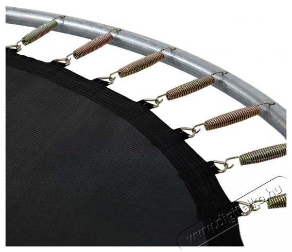 A rugók, a keret, a lábak és a védőháló tartóoszlopai egyaránt kiváló minőségűek, horganyzott kivitelűek. Az ugrófelület anyaga UV-álló. Biztosítja az erősséget és a tartósságot.