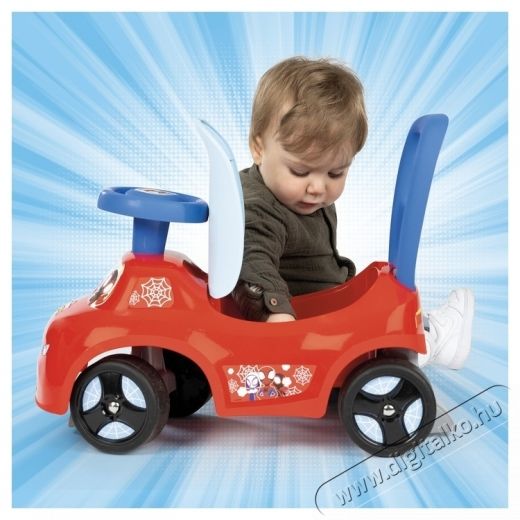 Smoby 720546 bébitaxi - Spidey és csodálatos barátai A Smoby 720546 bébitaxi - Spidey és csodálatos barátai alacsony kialakítású jármű, mely tökéletesen megfelel a járni tanuló és a tipegő korosztály igényeinek. A játék körülbelül 10 hónapos kortól stabil járássegítőként, 12 hónapos kortól pedig lábbal hajtható autóként használható. Az ergonomikus kialakítású ülés alatt egy tároló rekesz van elrejtve, ebben szállítható a kedvenc plüss állatka és a legszükségesebb holmik. A Smoby bébitaxi kormánya 30 fokos szögben forgatható, elejénél és hátuljánál alul egy-egy támasztó található, amely megakadályozza a borulást. Az ülés magassága 21 cm. A mosolygós kis cica-járgány vidám útitárs lesz a játszótéri kalandok során!