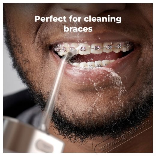 A lenyűgöző teljesítmény a fogszabályzó tisztításakor is érzékelhető. A víz hatékonyan átfolyik a dróton és a breketteken, hogy eltávolítsa az ételmaradékot, és megakadályozza a lepedék felhalmozódását ezeken a nehezen hozzáférhető területeken.