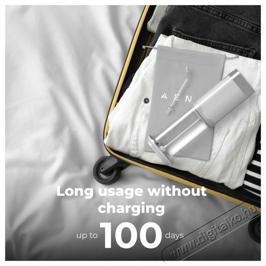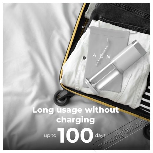 Az AENO DI2 újratölthető akkumulátorral működik, amely akár 100 napig is bírja. A LED-fényjelzés figyelmeztet, ha a töltöttségi szint alacsony. A teljes feltöltés mindössze 3 órát vesz igénybe.