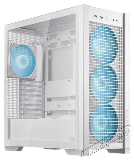 - Előtelepített ventilátorok : 3 × 140 mm elöl (ARGB, PWM), 1 × 140 mm hátul (ARGB)