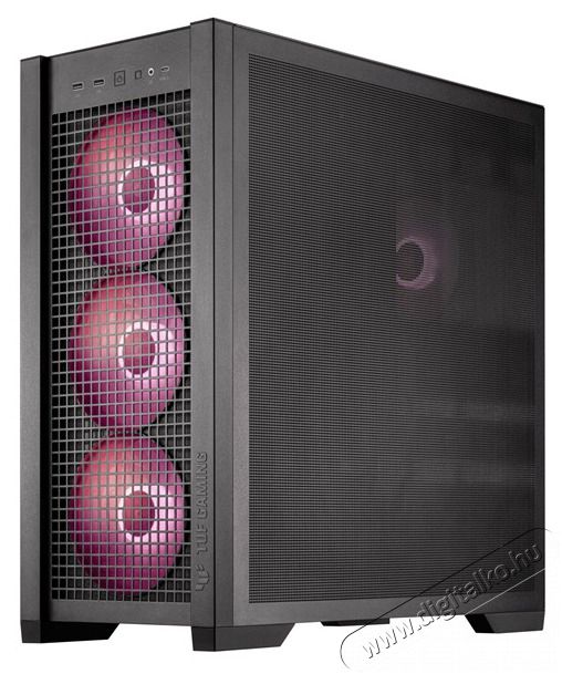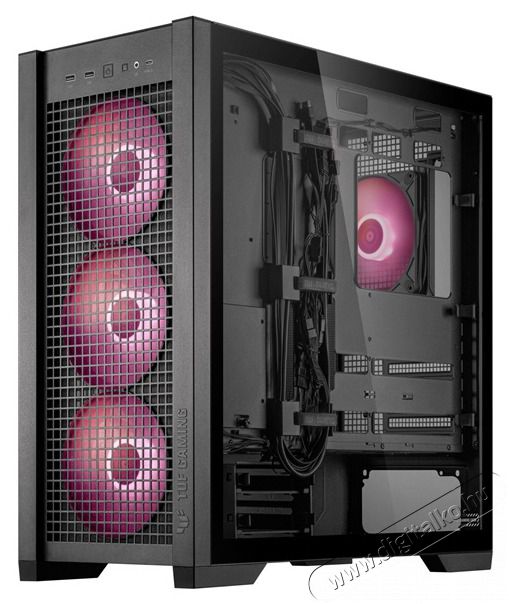 - Előtelepített ventilátorok : 3 × 140 mm elöl (ARGB, PWM), 1 × 140 mm hátul (ARGB)