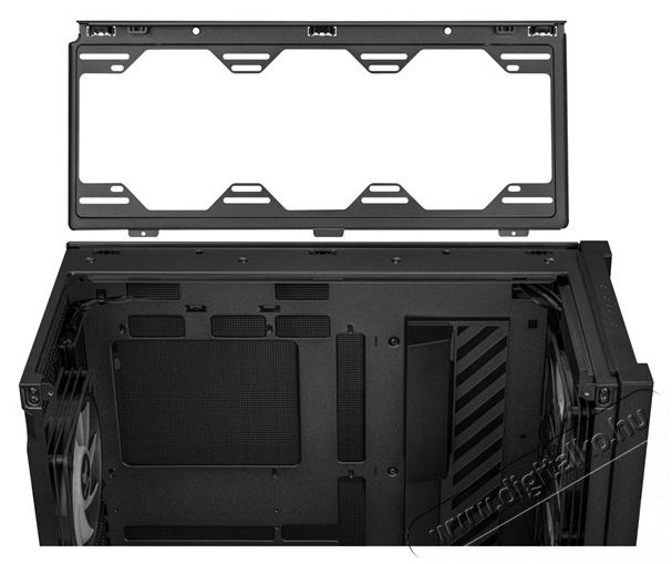 Levehető felső panel: Egyszerű és gyorsabb 360 mm-es AIO-hűtőtelepítés és kábelezés A levehető felső panel minden eddiginél könnyebbé teszi a kábelvezetést és a ventilátorok vagy a radiátor felszerelését.