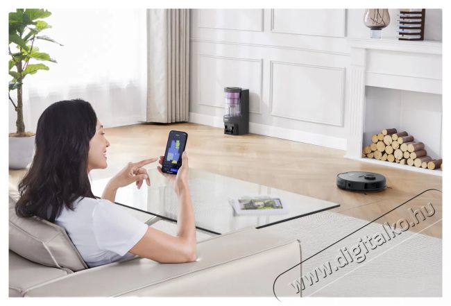 - A porszívó a testen, mobilalkalmazáson keresztül és hangutasítással vezérelhető