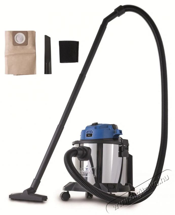 A Scheppach VC 16-GL egy kompakt és megbízható ipari porszívó, amely ideális választás otthoni vagy műhelyhasználatra egyaránt. 1200 W teljesítményének köszönhetően könnyedén megbirkózik a porral, szennyeződéssel, legyen szó száraz vagy nedves tisztításról. A készülék minden padlótípushoz alkalmas, így sokoldalúan használható különféle felületeken.
