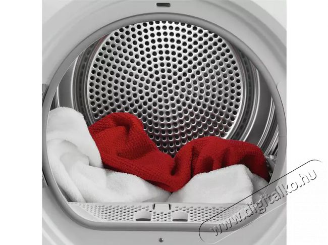 Az intenzív légáramlásnak köszönhetően gyorsabban és hatékonyabban szárít, mint a hagyományos szárítógépek. Így a ruhák rövidebb programok mellett is tökéletesen szárazak lesznek.